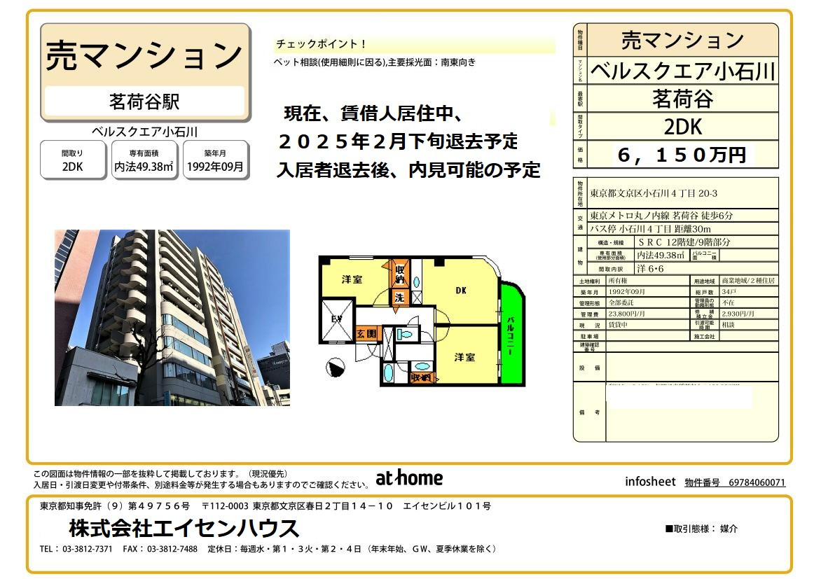 現 況:現在賃貸中(現賃借人様2025年2月19日にて解約予告有り)