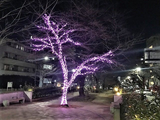 因みに今年の1月には地元の3商店会共催に因ります、文京播磨坂「冬のさくら」イルミネーションの催しが開催されました。