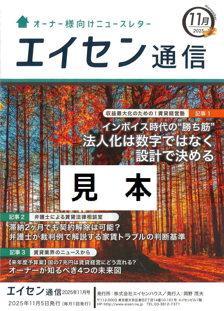 オーナー様向けマガジン「エイセン通信」2025年11月号のご紹介です。お時間ございましたらお目通し頂ければと思います。