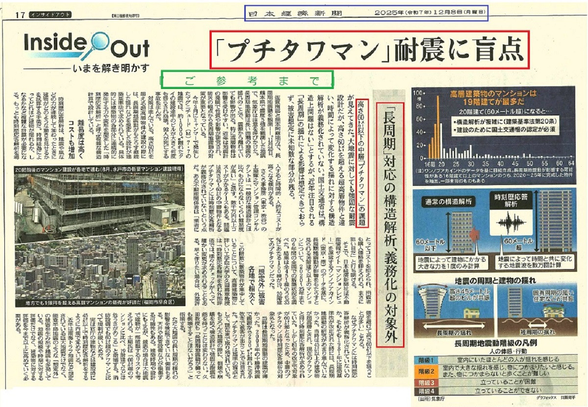 『プチタワマン』って言葉ご存知ですか。高さ60m以下の高層マンションの俗称のようです。ただ、耐震に盲点とは?