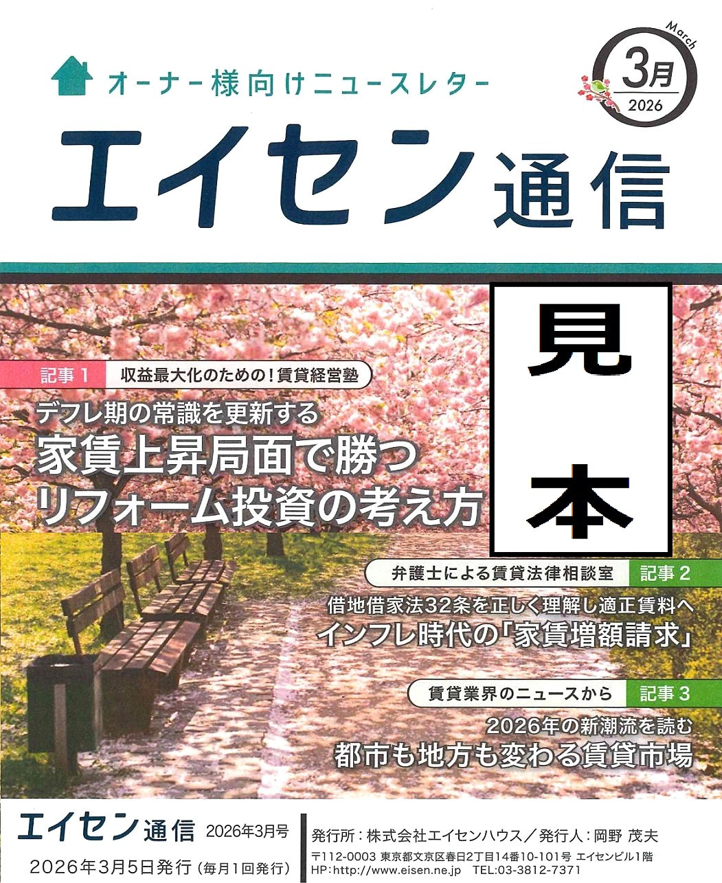 オーナー様向けマガジン「エイセン通信」2026年3月号記事1、のご紹介です。お時間ございましたらお目通し頂ければと思います。