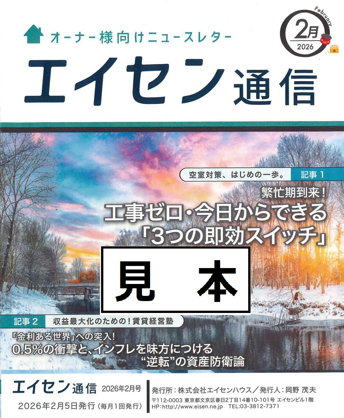 オーナー様向けマガジン「エイセン通信」2026年2月号のご紹介です。お時間ございましたらお目通し頂ければと思います。