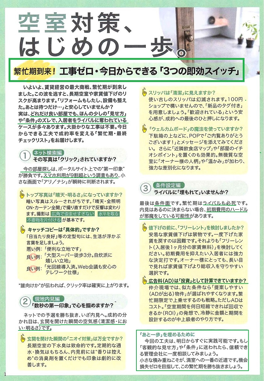では、記事1:繁忙期到来!空室対策、はじめの一歩。~3bつの工夫とは?