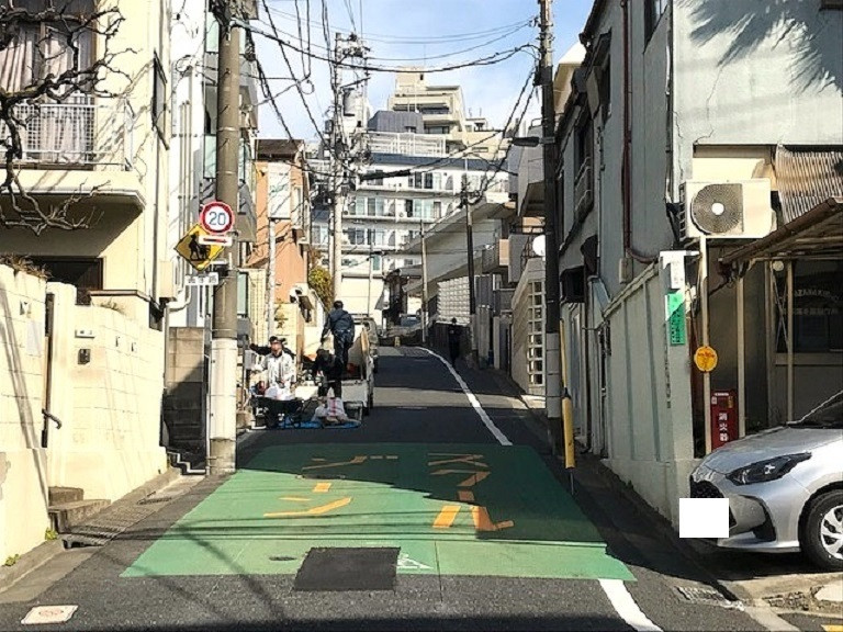 ■右折して頂きますと写真のような坂道になっています。坂道の両側は新し目の分譲マンションや管理良好な賃貸マンションが建っています。👇👇👇こちらの坂道は「春日通り」からだけ進入出来ます一方通行となっています。