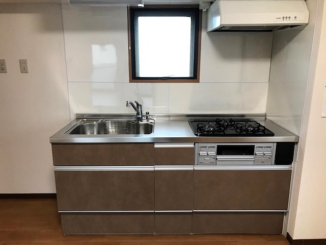 以下は新設キッチンの写真です。コンロは「ビルトイン」です。